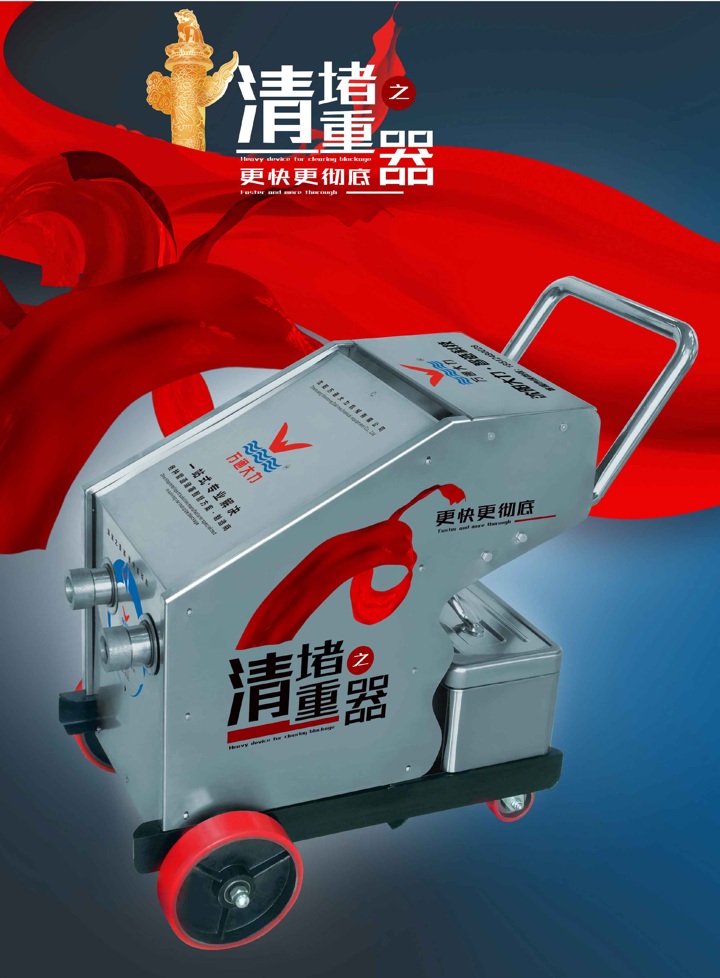 沈陽(yáng)萬(wàn)通大力機(jī)械有限公司是智能數(shù)碼地?zé)崆逑礄C(jī)、新型快速動(dòng)汽清洗機(jī)、管道疏通機(jī),高壓清洗機(jī)、管道清洗機(jī),鍋爐洗管機(jī) 中央空調(diào)清洗機(jī),高壓水射流清洗機(jī)。冷凝器清洗機(jī)、空氣預(yù)熱器清洗機(jī)、大型市政管道疏通車和試壓泵的設(shè)計(jì)、制造和銷售的專業(yè)型企 業(yè)。